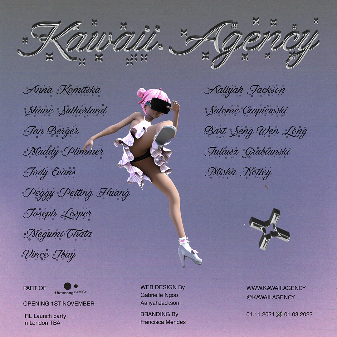 Kinda cute, but also kinda cursed; sorta contemporary, but also sorta cringe - Kawaii Agency is a curatorial project started by Bart Seng Wen Long and Juliusz Grabianski, with a focus on up-and-coming artists, yassified Gen Z aesthetics, digital cultures, transdisciplinary experimentation and quirky new ideas.